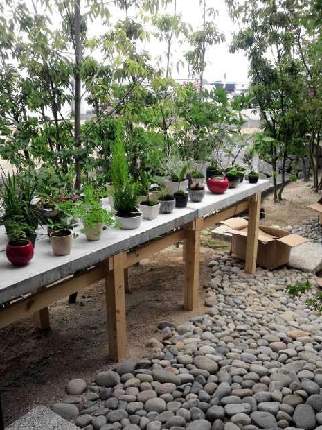 波平です 2012/06/08 盆栽 #コケ張り #盆栽 即興の盆栽棚も完成! 室内で飾れそうな小品盆栽が並びます 今日でコケ張りもほとんど終わりました あとは門柱周りだけ みんなの協力でいよいよ完成です またまた間に合って良かったー