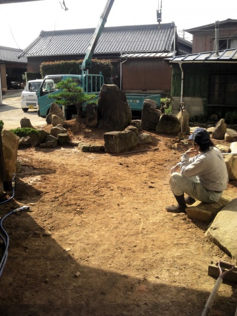 幸田の石組み 2012/11/02 仕事風景 幸田町 ただいまの案件 庭を解体して道路のセットバック 切り土を留める為に解体で発生した石を使って石積みをして それでもまだ石がたくさんあるので石組みの庭に再度作り変えます 完成まであと少し…