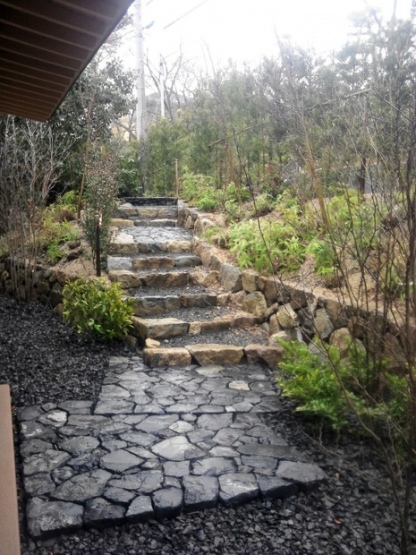 名古屋市 守山の庭 2013/03/09 仕事風景 守山区の作庭もようやく完成が見えてきました 春は植栽の季節です 今回お隣さんの敷地に自生しているコシダを分けていただけるとの事だったので それをグランドカバーとしました 良くなったなー また工期がギリギリ…工期ってそんなものかもしれない またまた皆に助けられました