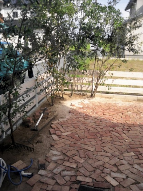みんなちがってみんないいのだ 2012/09/13 仕事風景 本日は西尾市一色 作庭嘉ェ門のお手伝い 以前一緒にやったお庭が完成したようです 自分ではやれないデザインが面白いです レンガの目地にはイワダレソウが仕込んであるとの事 早く緑いっぱいになるといいですね